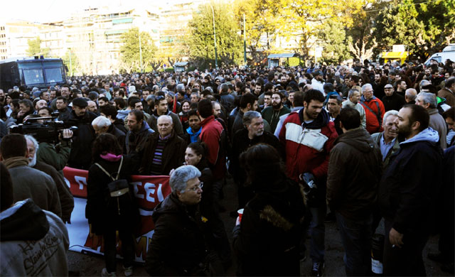 Εν τω μεταξύ, συγκέντρωση συμπαράστασης για τους 35 συλληφθέντες πραγματοποιεί αυτήν την ώρα το ΠΑΜΕ έξω από τα δικαστήρια της Ευελπίδων.