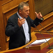 Ο υπουργός μιλώντας στη Βουλή επέμενε στην κυβερνητική θέση ότι την πόρτα και την επίπλωση στο γραφείο κατέστρεψαν οι συνδικαλιστές του ΠΑΜΕ.