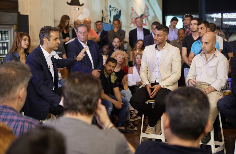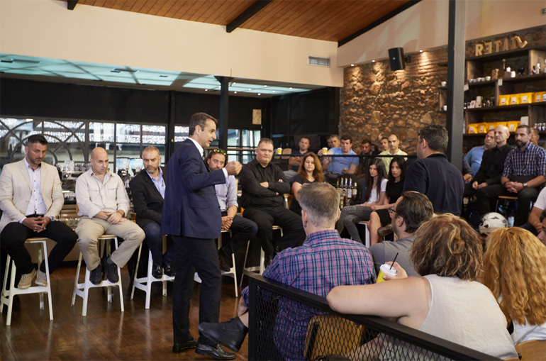 Κατά τη διάρκεια της συνομιλίας του με τους εργαζόμενους, ο κ. Μητσοτάκης επανέλαβε τη δέσμευσή του για μείωση της φορολογίας με ταυτόχρονη μείωση των κρατικών δαπανών, προκειμένου να δημιουργηθεί δημοσιονομικός χώρος. Τόνισε, ότι η Ελλάδα έχει ανάγκη μια αξιόπιστη Κυβέρνηση που θα μπορέσει να διαπραγματευτεί και να πετύχει μείωση των πρωτογενών πλεονασμάτων, ενώ υπογράμμισε ότι ο μόνος δρόμος για να δημιουργηθούν νέες θέσεις εργασίας είναι η προσέλκυση ιδιωτικών επενδύσεων.