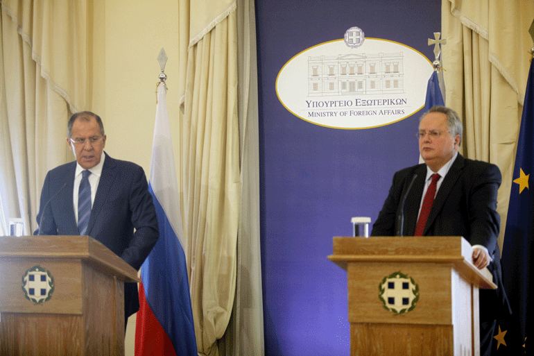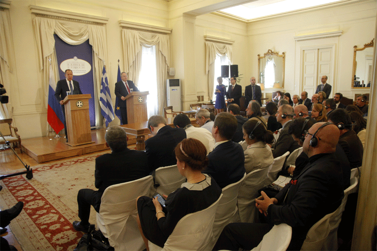 Τη βούληση για εμβάθυνση των διμερών σχέσεων και ανάπτυξη του πολιτικού διαλόγου στη βάση της αμοιβαίας εμπιστοσύνης, όπως απεικονίζουν οι στενοί δεσμοί των δύο χωρών και λαών, αλλά και όπως επιβεβαιώνει μακροπρόθεσμα σήμερα η υπογραφή του Προγράμματος Διαβουλεύσεων των δύο υπουργείων Εξωτερικών 2017-2019, εξέφρασαν στην κοινή συνέντευξη Τύπου οι υπουργοί Εξωτερικών της Ελλάδας και Ρωσίας, Νίκος Κοτζιάς και Σεργκέι Λαβρόφ.