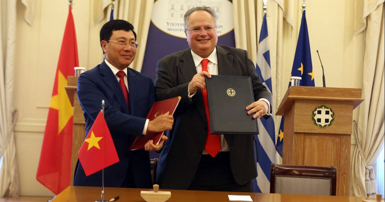 Ιδιαίτερη έμφαση δόθηκε στη συνεργασία των δύο χωρών για την προώθηση των σχέσεων του Βιετνάμ στην ΕΕ. Ο κ. Μινχ εξέφρασε την ιδιαίτερη, όπως είπε, εκτίμηση της χώρας του ως προς «την υποστήριξη της Ελλάδας για την επίσημη υπογραφή και επικύρωση της συμφωνίας ελεύθερων συναλλαγών μεταξύ Ευρωπαϊκής Ένωσης και Βιετνάμ». «Η έγκαιρη υπογραφή και επικύρωση της συμφωνίας για την προστασία των επενδύσεων μεταξύ Βιετνάμ και Ευρωπαϊκής Ένωσης θα ικανοποιήσει το ενδιαφέρον και τη φιλοδοξία της επιχειρηματικής κοινότητας των λαών τόσο της Ελλάδας όσο και του Βιετνάμ», σημείωσε.