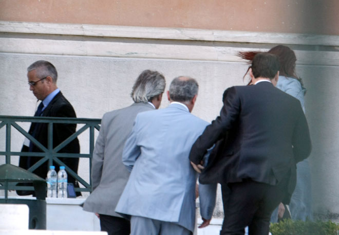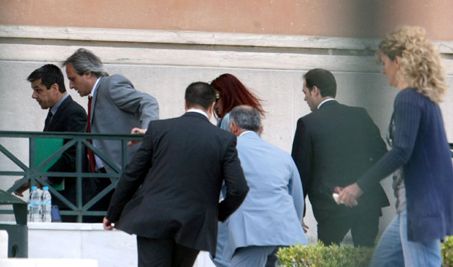 Στις 12.12 μ.μ. οι δύο βουλευτές εφτασαν στο ελληνικό Κοινοβούλιο υπό δρακόντεια μέτρα ασφαλείας και μπήκαν από την είσοδο επί της Λ. Αμαλίας, όπου βρίσκεται το παρκινγκ της Βουλής.