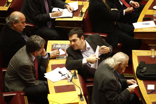 Ο Πρωθυπουργός εισήλθε στην αίθουσα και χειροκροτήθηκε από τους βουλευτές της Νέας Δημοκρατίας.