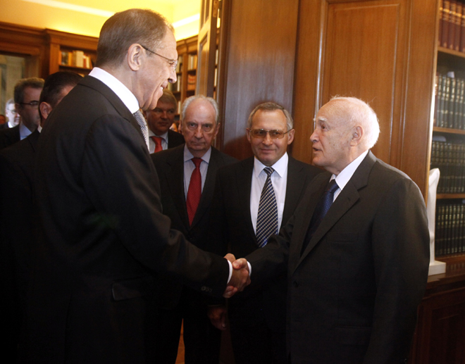 O Ρώσος υπουργός Εξωτερικών συναντήθηκε επίσης με τον πρωθυπουργό Αντώνη Σαμαρά, αλλά έγινε δεκτός και από τον Πρόεδρο της Δημοκρατίας Κάρολο Παπούλια.