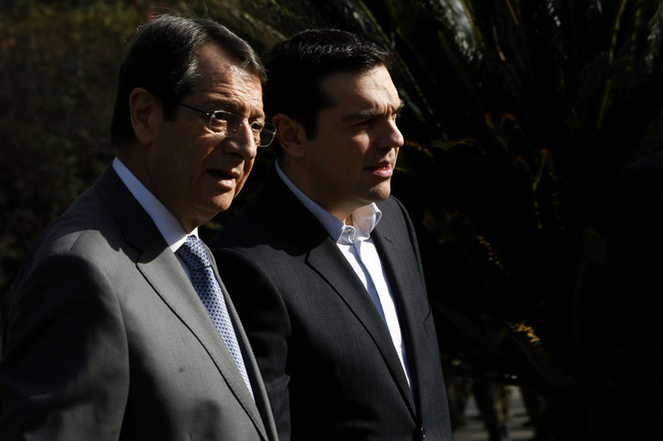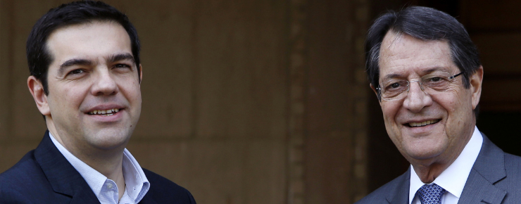 Στο πλαίσιο αυτό, ο κ. Τσίπρας συναντήθηκε σήμερα στη Λευκωσία με τον πρόεδρο Αναστασιάδη, συνάντηση κατά την οποία συζήτησαν μεταξύ άλλων για τις σχέσεις Ελλάδας – Κύπρου, την τουρκική προκλητικότητα στη λεκάνη της Ανατολικής Μεσογείου και τα σχέδια της ελληνικής κυβέρνησης για τη διαπραγμάτευση με τους δανειστές.