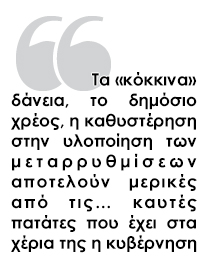 Δεύτερον, οι υστερήσεις των μεταρρυθμίσεων μπορεί να προκαλέσουν εκ νέου άνοδο των επιτοκίων δανεισμού της χώρας. Πρέπει να τονιστεί ότι ακόμα και χωρίς «Μνημόνιο» η χώρα θα εξακολουθεί να βρίσκεται υπό εποπτεία – αυτή τη φορά οι αγορές θα αντικαταστήσουν την τρόικα, στην περίπτωση φυσικά που η Ελλάδα δεν θα προσφύγει στον ΕΜΣ. Σύμφωνα όμως με την έκθεση, το πιθανότερο είναι ότι θα προσφεύγει για δάνεια σε αυτόν ή σε κάποιο ad hoc διακρατικό «όχημα». Στην περίπτωση αυτή θα υπάρξουν νέες συμβατικές δεσμεύσεις. Η ΕΕ υπολογίζει ότι τη διετία 2014- 2015 οι επιπρόσθετες χρηματοδοτικές ανάγκες (additional financing requirements) της Ελλάδας θα ανέλθουν σε 14,9 δισ. ευρώ (2,6 δισ. ευρώ για το 2014 και 12,3 δισ. ευρώ για το 2015). Αν επιβεβαιωθεί, η Ελλάδα θα πρέπει ή να συνεχίσει να δανείζεται από τις διεθνείς αγορές (πράγμα που ήδη συναντά δυσκολίες) ή να προσφύγει στον ΕΜΣ, που συνεπάγεται νέο πρόγραμμα προσαρμογής (και σχετική σύμβαση) σύμφωνα με τους κανόνες του μηχανισμού.