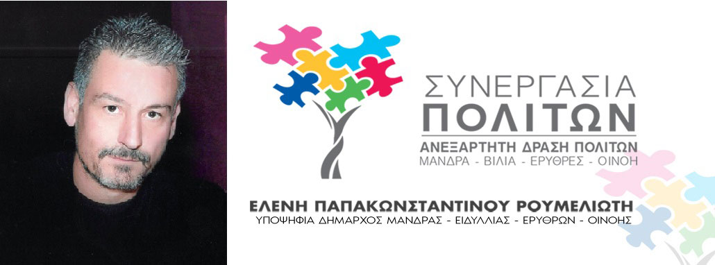 Τον Δήμο Μάνδρας Ειδυλλίας, διεκδικεί με αξιώσεις η Ελένη Παπακωνσταντίνου Ρουμελιώτη με τον Ανεξάρτητο Αυτοδιοικητικό συνδυασμό «ΣΥΝΕΡΓΑΣΙΑ ΠΟΛΙΤΩΝ».