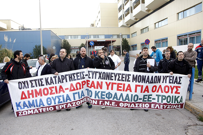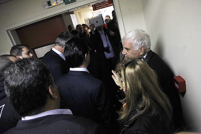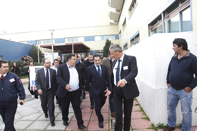 «Είστε υπουργός των βιομηχάνων και των τραπεζικών» του φώναξαν εργαζόμενοι του νοσοκομείου και εκείνος απαντούσε: «Η χώρα έχει χρεοκοπήσει, έχουμε προβλήματα. Αντί να φωνάζουμε ο ένας στον άλλο, δεν βρίσκουμε καμιά λύση; Δε θα μας λύσει τα προβλήματα η γκρίνια. Χρεοκοπήσαμε, δεν έχουμε φράγκο».