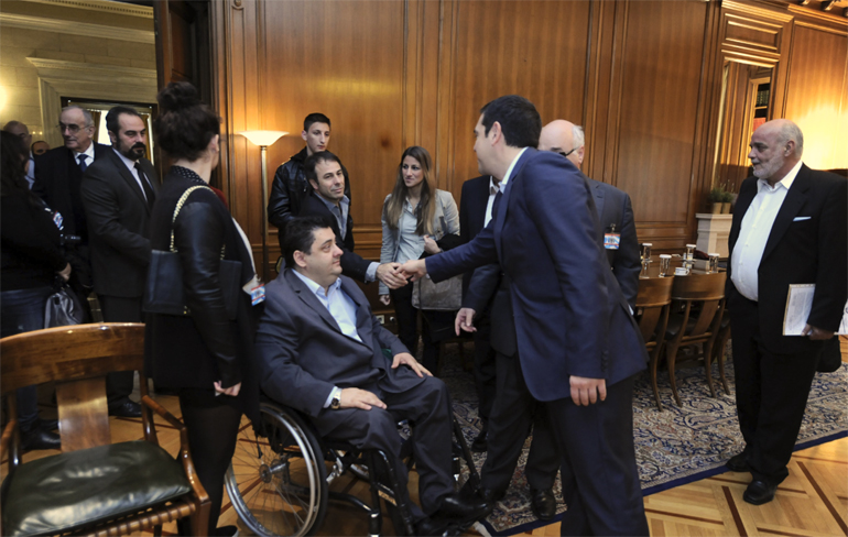 Τους εκπροσώπους της Εθνικής Συνομοσπονδίας Ατόμων με Αναπηρία (Ε.Σ.ΑμεΑ) υποδέχτηκε την Πέμπτη ο Πρωθυπουργός Αλέξης Τσίπρας.