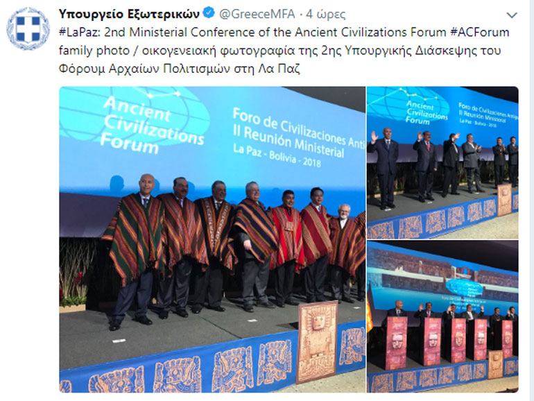 Στην πρωτεύουσα της Βολιβίας, Λα Παζ, βρίσκεται ο υπουργός Εξωτερικών, Νίκος Κοτζιάς, ο οποίος συμμετείχε στη 2η Υπουργική Σύνοδο του Φόρουμ των Αρχαίων Πολιτισμών (Ancient Civilizations Forum – ACForum).