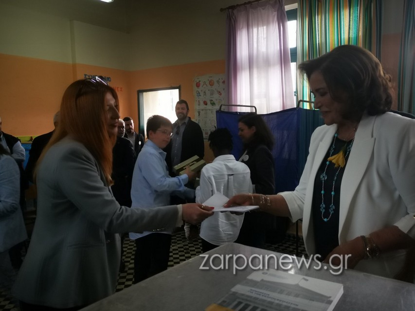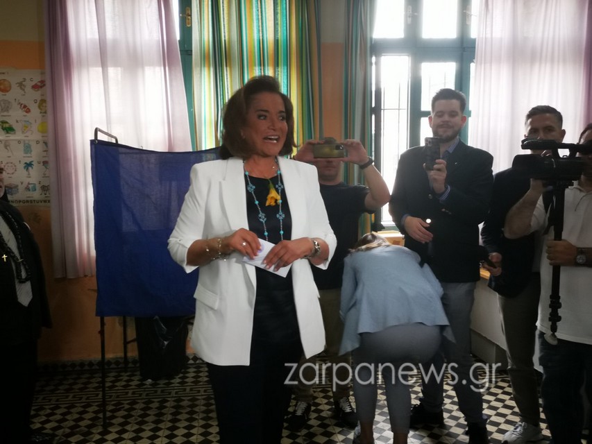 Συνοδευόμενη από τα εγγόνια της, οικογένεια και φίλους, η Ντόρα Μπακογιάννη άσκησε το εκλογικό της δικαίωμα στις 12 το μεσημέρι της Κυριακής στο 9ο Δημοτικό Σχολείο Χανίων όπου φοίτησε ως μαθητής ο Κωνσταντίνος Μητσοτάκης.