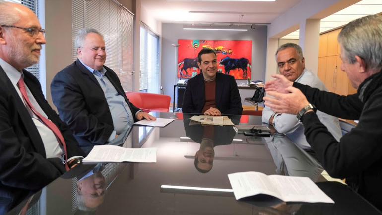 Συνάντηση του Προέδρου του ΣΥΡΙΖΑ, Αλέξη Τσίπρα με αντιπροσωπεία του «Πράττω», υπό τον επικεφαλής του και πρώην Υπουργό Εξωτερικών, Νίκο Κοτζιά