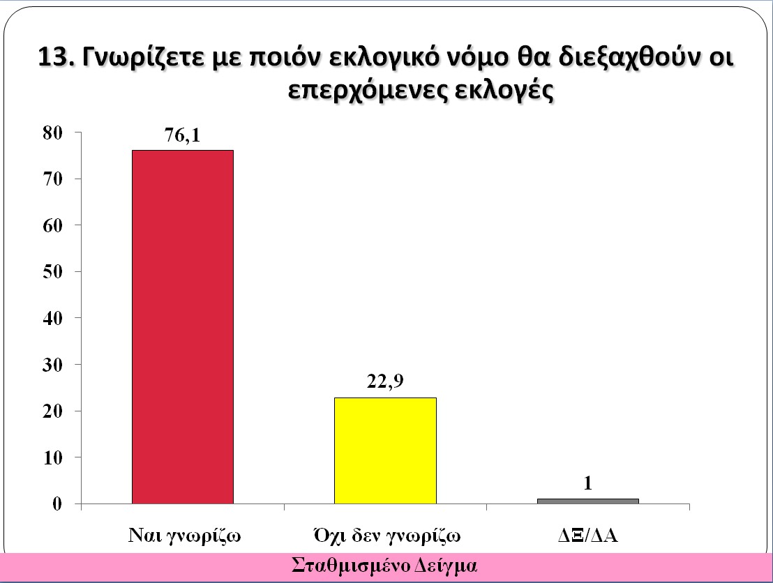 Καλά πληροφορημένοι οι πολίτες σε γενικές γραμμές, δηλώνουν κατά ένα σαρωτικό ποσοστό πώς γνωρίζουν με ποιόν εκλογικό νόμο θα διεξαχθούν οι επερχόμενες εκλογές.