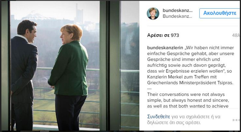 Η καγκελάριος Άνγκελα Μέρκελ στον απόηχο των διαπραγματεύσεων και συζητήσεων περί ελληνικού χρέους, ανάρτησε στον προσωπικό της λογαριασμό μία πιο… ανθρώπινη φωτογραφία με τον Έλληνα πρωθυπουργό.