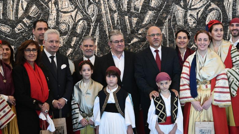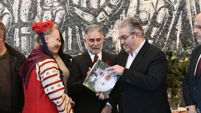 Η Παναρκαδική Ομοσπονδία Ελλάδας είπε τα χριστουγεννιάτικα κάλαντα στην τσακώνικη διάλεκτο, καθώς και άλλα παραδοσιακά γιορτινά τραγούδια, στον ΓΓ της ΚΕ του ΚΚΕ, Δημήτρη Κουτσούμπα, την Παραμονή Χριστουγέννων, στην έδρα της ΚΕ του Κόμματος στον Περισσό.