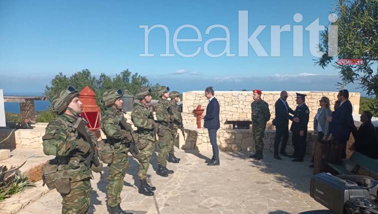 Στη συνέχεια ο πρωθυπουργός επισκέφθηκε το στρατιωτικό φυλάκιο της Γαύδου, στο οποίο υπηρετούν οκτώ στρατιώτες, ξεναγήθηκε στους χώρους του φυλακίου και στη μουσειακή έκθεση που βρίσκεται στην είσοδο του Φάρου, συνομίλησε και αντάλλαξε ευχές για το νέο έτος με τους στρατιώτες.