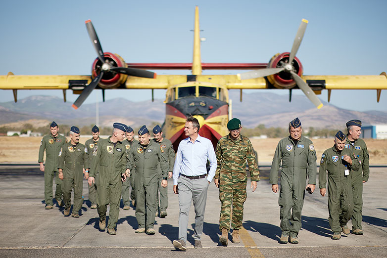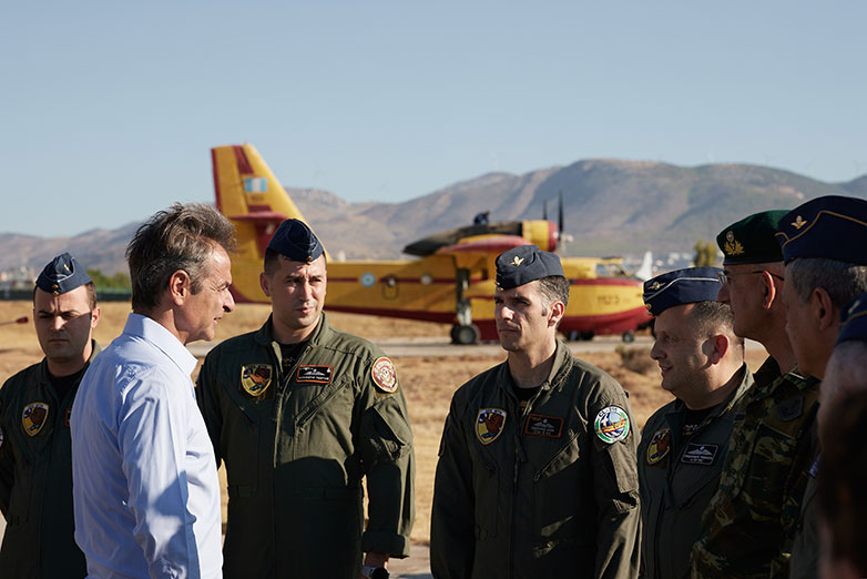 Ο κ. Μητσοτάκης, συνοδευόμενος από τον αρχηγό ΓΕΕΘΑ, στρατηγό Δημήτριο Χούπη και τον αρχηγό ΓΕΑ, αντιπτέραρχο Δημοσθένη Γρηγοριάδη, ενημερώθηκε για τις αποστολές των πυροσβεστικών αεροσκαφών Canadair CL-215 και CL-415 που συμβάλλουν στο απαιτητικό έργο κατάσβεσης των πυρκαγιών, ενώ επισκέφθηκε και τη Μοίρα Συντήρησης Αεροσκαφών, όπου συνομίλησε με τους τεχνικούς που συντηρούν τα αεροσκάφη καθ’ όλη τη διάρκεια του 24ωρου για να ανταποκρίνονται με αποτελεσματικότητα στις αποστολές τους, σύμφωνα πάντα με κυβερνητικές πηγές.