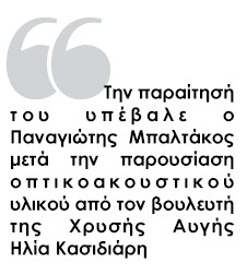 Τρικυμία στο καράβι της κυβέρνησης προκάλεσε η αποκάλυψη της μυστικής συνομιλίας μεταξύ του στενού συνεργάτη του πρωθυπουργού Τάκη Μπαλτάκου και του βουλευτή της Χρυσής Αυγής Ηλία Κασιδιάρη για την υπόθεση διώξεων μελών του κόμματός του.