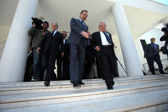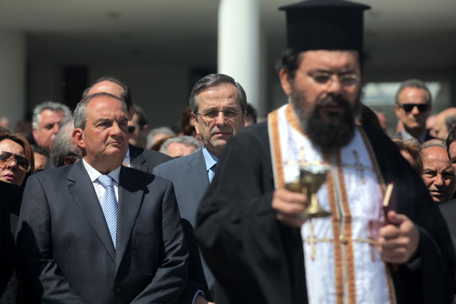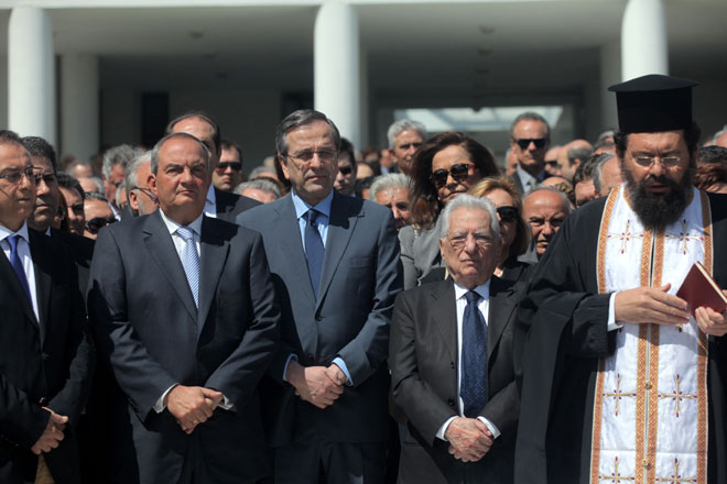 Ο πρωθυπουργός Αντώνης Σαμαράς και ο πρώην πρόεδρος της Νέας Δημοκρατίας Κώστας Καραμανλής επιχείρησαν σήμερα να στείλουν στους ψηφοφόρους του κόμματος μήνυμα ενότητας σε μια προσπάθεια συσπείρωσης εν όψει των εκλογών. Οι δύο άνδρες πραγματοποίησαν κοινή εμφάνιση έπειτα από αρκετό καιρό, ενώ κατά τη διάρκεια της επιμνημόσυνης δέησης στέκονταν δίπλα-δίπλα.