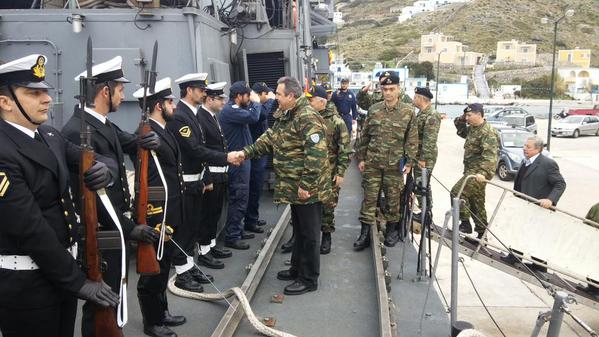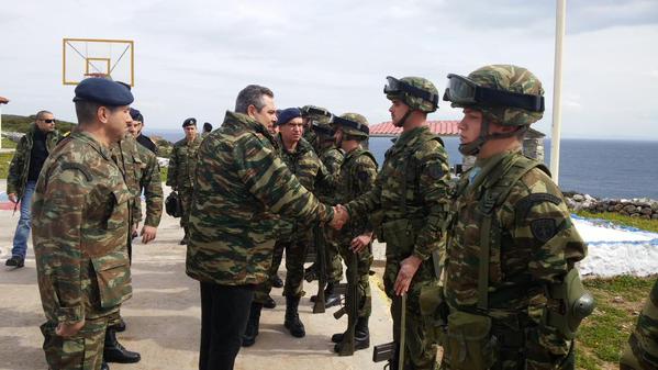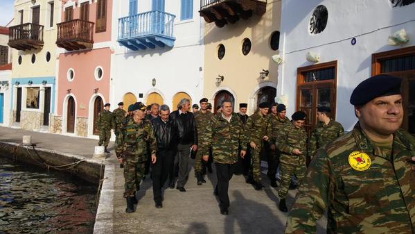 Περιοδεία σε στρατιωτικές μονάδες των ακριτικών νησιών πραγματοποιεί ο υπουργός Εθνικής Άμυνας Πάνος Καμμένος. Σύμφωνα με πληροφορίες, το ελικόπτερο που μετέφερε τον κ. Καμμένο, καθώς και τη στρατιωτική ηγεσία των Ενόπλων Δυνάμεων βρισκόταν στις 11:15 στη διαδικασία προσγείωσης στο Φαρμακονήσι, ενώ στη συνέχεια ο υπουργός Άμυνας επισκέφτηκε μονάδες στο Αγαθονήσι, το Καστελόριζο, τη Στρογγύλη και τη Ρω.