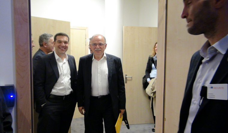 Αρχικά, συναντήθηκε με τον πρόεδρο του Ευρωκοινοβουλίου Μάρτιν Σουλτς, παρουσία και του υπουργού Επικρατείας Νίκου Παππά.