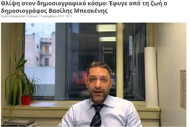 «Όταν φεύγει ένας νέος άνθρωπος τόσο πρόωρα και τόσο ξαφνικά είναι δύσκολο να βρεις λόγια. Ο δημοσιογραφικός κόσμος, αλλά και όσοι τον γνώριζαν προσωπικά είναι σοκαρισμένοι από το θάνατο του Βασίλη Μπεσκένη.
