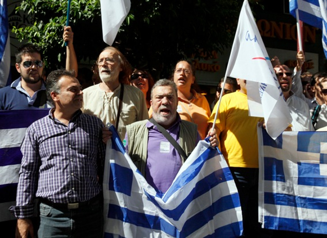 Κατά την είσοδό τους τα μέλης της τρόικας αποδοκιμάστηκαν από συγκεντρωμένα μέλη των Ανεξαρτήτων Ελλήνων τα οποία κρατούσαν σημαίες.