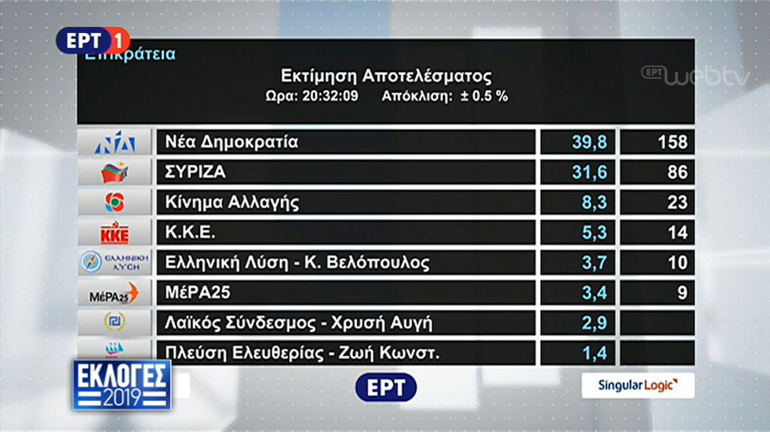 Νέα Δημοκρατία: 39,8% και 158 έδρες