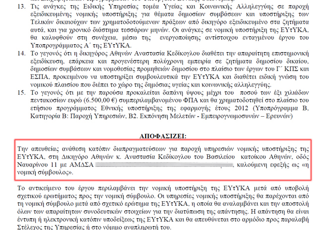 Ο κ. Νικολόπουλος ισχυρίζεται πως αυτά που καταγγέλλει με ερώτησή του στη Βουλή, την οποία υπέβαλε την Τρίτη για τις επαγγελματικές δραστηριότητες της αδελφής του κυβερνητικού εκπροσώπου, Νάσιας (Αναστασίας) Κεδίκογλου, δικηγόρου, επαυξάνονται με νεότερα στοιχεία. Συγκεκριμένα, υποστηρίζει πως η αδελφή του κ. Σίμου Κεδίκογλου με τη μέθοδο των απευθείας αναθέσεων αναλαμβάνει δουλειές νομικής φύσεως από οργανισμούς του Δημοσίου, με αιχμή του δόρατος το Υπουργείο Υγείας, αλλά όχι μόνον.