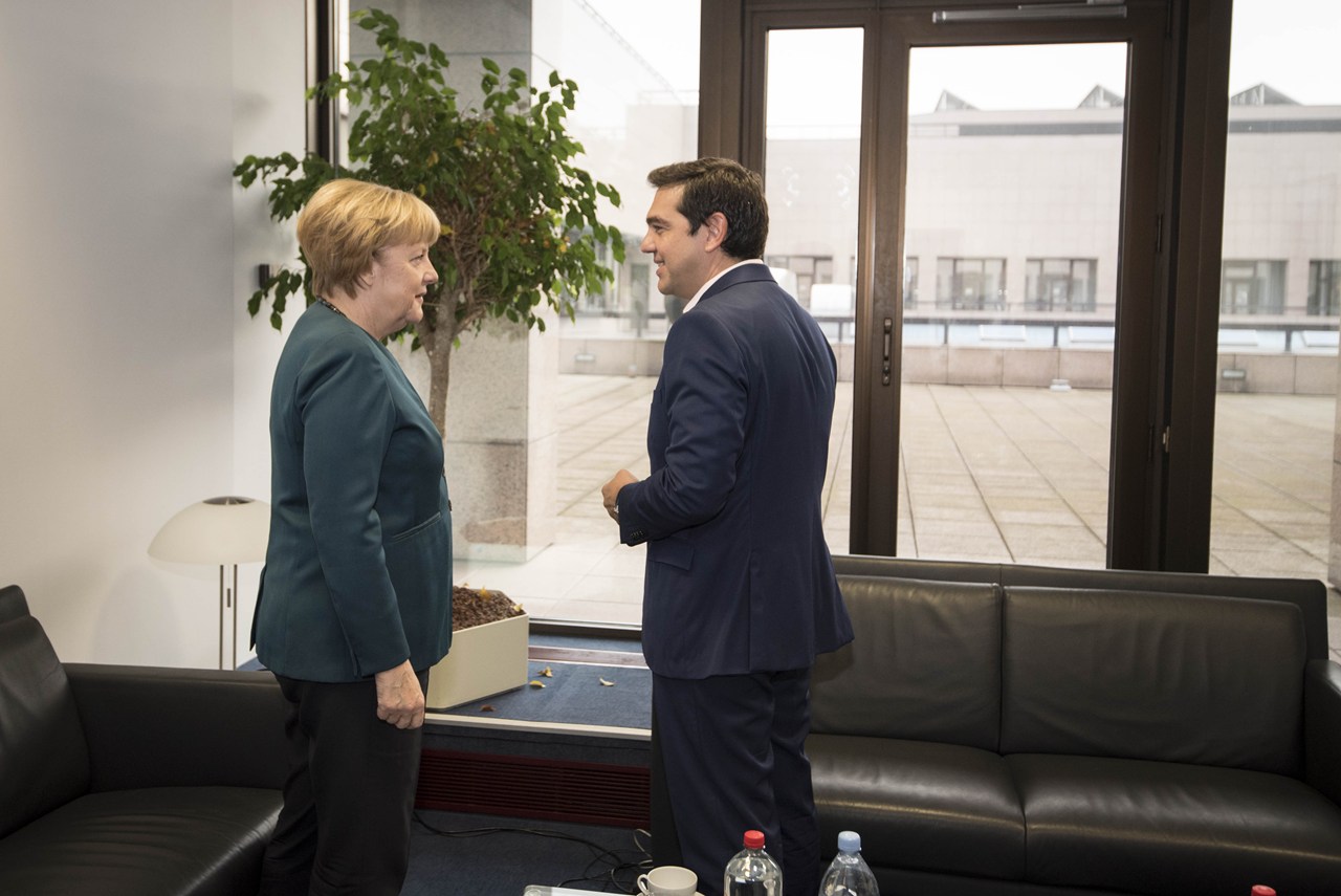 Η Γερμανίδα καγκελάριος, κατά τη διάρκεια συνέντευξης Τύπου που παραχώρησε λίγο μετά τη λήξη των εργασιών της Συνόδου Κορυφής ερωτηθείσα για τις συζητήσεις με τον Έλληνα πρωθυπουργό δήλωσε: «Τα θέματα της συνάντησης ήταν τρία: Προσφυγικό, ελληνικό πρόγραμμα και Κυπριακό»