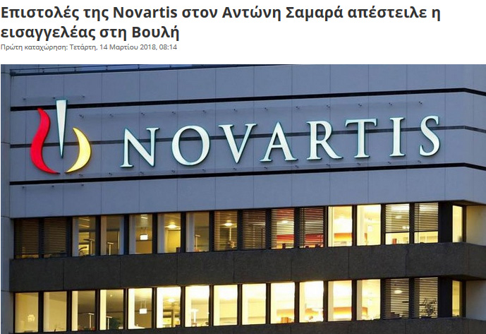 Την ίδια ώρα, η εφημερίδα «Αυγή» επικαλείται έγγραφο της Novartis, υπό τον τίτλο «Proposal for Adonis», με το οποίο η εταιρεία φέρεται να δίνει οδηγίες στην κυβέρνηση Σαμαρά για τη φαρμακευτική πολιτική που πρέπει να ακολουθήσει.