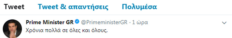 Με ανάρτησή του στο Twitter, ο πρωθυπουργός εύχεται «Χρόνια πολλά σε όλες και όλους».