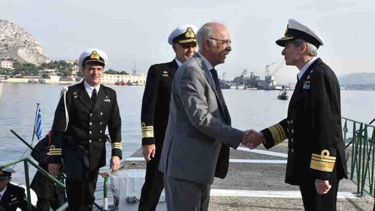Ο Αναπληρωτής Υπουργός Εθνικής Άμυνας, Δημήτρης Βίτσας, συνοδευόμενος από τον Αρχηγό ΓΕΝ Αντιναύαρχο Γεώργιο Γιακουμάκη ΠΝ, επισκέφθηκε την Δευτέρα το Αρχηγείο Στόλου στο Ναύσταθμο Σαλαμίνας.