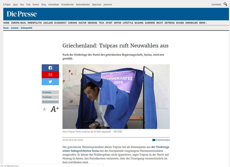 «Ο Τσίπρας ανακοίνωσε νέες εκλογές» είναι ο τίτλος της αυστριακής ιστοσελίδας Die Presse.