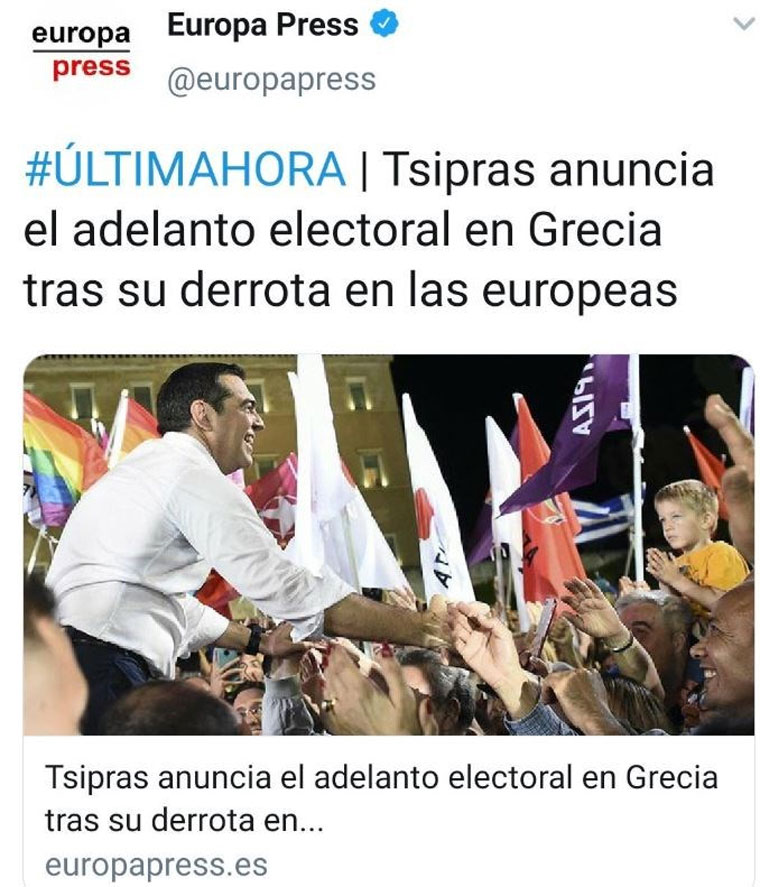 «Ο Τσίπρας ανακοίνωσε πρόωρες εκλογές στην Ελλάδα μετά την ήττα του στις ευρωεκλογές» αναφέρει σε ρεπορτάζ του το ισπανικό πρακτορείο ειδήσεων Europa Press, αλλά και το γερμανικό Der Spiegel.