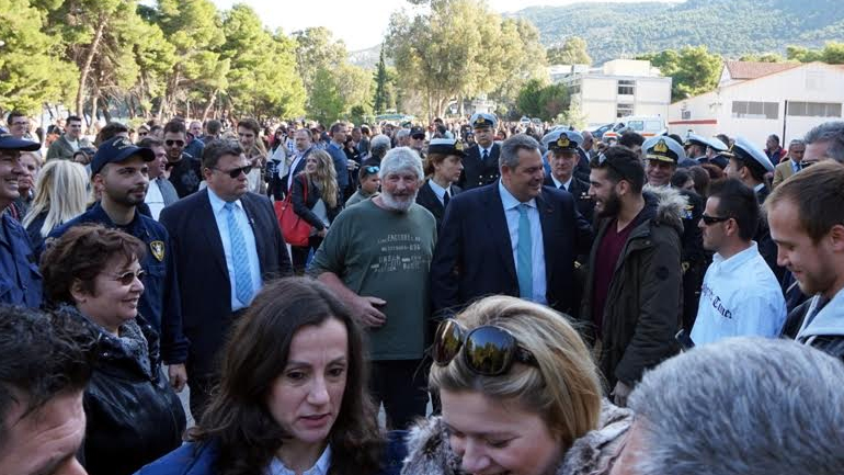 Ο Υπουργός Εθνικής Άμυνας Πάνος Καμμένος, συνοδευόμενος από τον Αρχηγό ΓΕΕΘΑ Ναύαρχο Ευάγγελο Αποστολάκη ΠΝ και τον Αρχηγό ΓΕΝ Αντιναύαρχο Γεώργιο Γιακουμάκη ΠΝ, παρέστη στην τελετή ορκωμοσίας των ναυτών της 2015 ΣΤ ΕΣΣΟ που έγινε στη Ναυτική Βάση «Κανελλόπουλος» στο Ναυτικό Οχυρό Σκαραμαγκά.