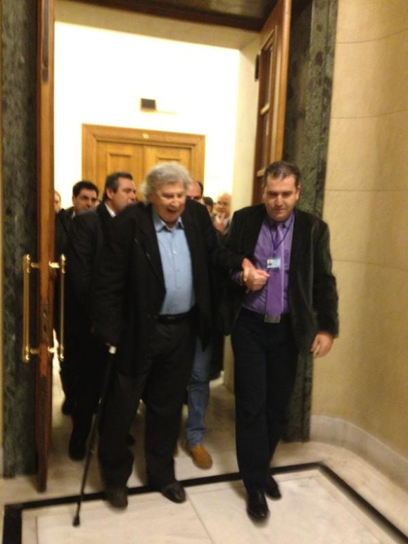 O Mίκης Θεοδωράκης κατά την είσοδό του στη Βουλή