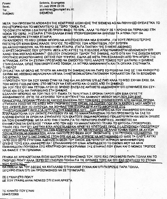 «Να επανακληθεί στην εξεταστική επιτροπή για τη Siemens ο γαμπρός του Αντώνη Σαμαρά, Ευάγγελος Σέκερης, -αλλά κι ο ίδιος ο πρόεδρος της Νέας Δημοκρατίας- ζητάει ο βουλευτής του ΠΑΣΟΚ Βασίλης Γκεγκέρογλου, καθώς από τα αρχεία που εστάλησαν στην επιτροπή από τη Siemens υπάρχει ηλεκτρονικό μήνυμα του κυρίου Σέκερη προς τον Αντώνη Σαμαρά.