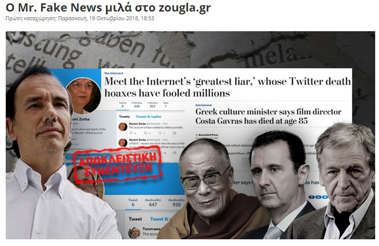 Εθισμένος στα fake news, έχει την αίσθηση ότι παράγει «δημοσιογραφικό θέαμα». Επί της ουσίας προσπαθεί να δημιουργήσει θόρυβο γύρω από το πρόσωπό του προκαλώντας.
