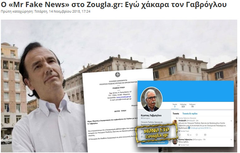 Θέλω να προσθέσω πως η φάρσα μου αλλά και άλλες φάρσες που δημιούργησα έχουν ως κίνητρο να δείξουν πόσο εύκολο είναι να μιμηθούμε έναν υπουργό στο Twitter και να μεταδώσουμε ψεύτικες ειδήσεις.