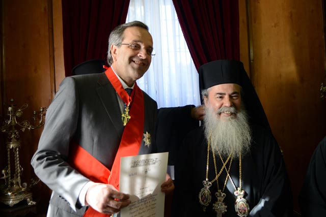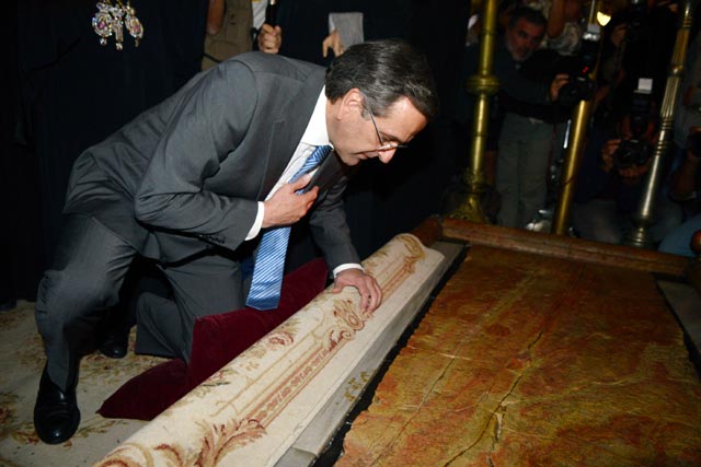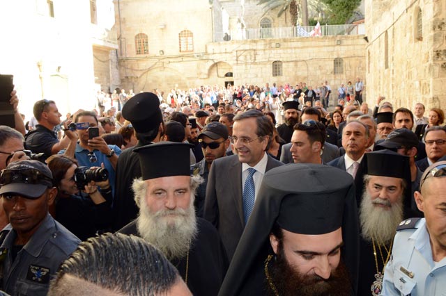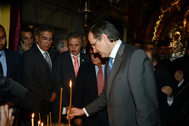 Ο κ. Σαμαράς επισκέφθηκε το Πατριαρχείο Ιεροσολύμων και ακολούθως, υπό τους χαρμόσυνους ήχους του Ναού της Αναστάσεως, περπάτησε μέχρι το Ναό όπου και με ιδιαίτερη συγκίνηση προσκύνησε στον Πανάγιο Τάφο. Τον πρωθυπουργό και την συνοδεία του ξενάγησε στα προσκυνήματα και στο καθολικό του Ναού ο Πατριάρχης.