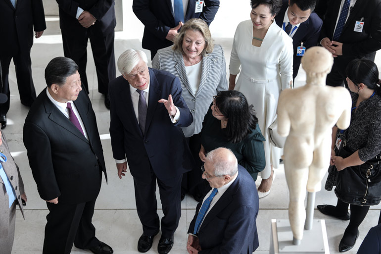 Στο σημείο αυτό, στο κέντρο του Μουσείου, όπως το χαρακτήρισε ο Έλληνας Πρόεδρος, ο κ. Παυλόπουλος ζήτησε την υποστήριξη του Κινέζου ομολόγου του για την επιστροφή των Γλυπτών από το Βρετανικό Μουσείο: