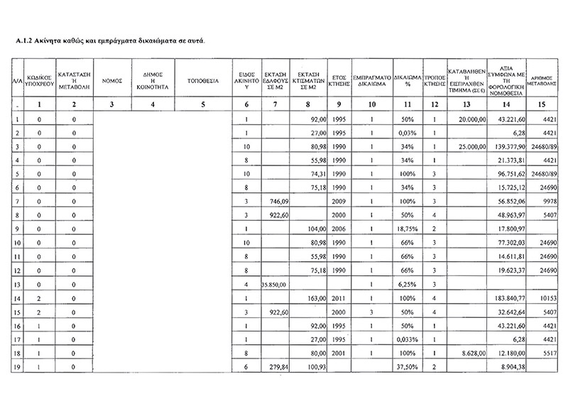 Η οικογένεια Σταθάκη δηλώνει 51 εγγραφές ακινήτων σε Χανιά, Κορινθία, Αττική και Αχαΐα, με τον Υπουργό να έχει στη δική του κατοχή τα 13 εξ αυτών.