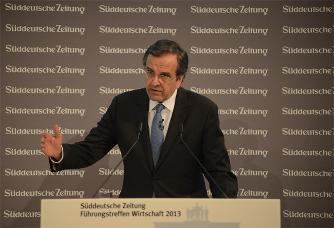 «Ο έλληνας Πρωθυπουργός γοητεύει κατά το ταξίδι του στο Βερολίνο και μιλάει για «θεαματικό comeback» της χώρας του. Σημαντικές ωστόσο μεταρρυθμίσεις εξακολουθούν να μην υλοποιούνται ή να υλοποιούνται με αργούς ρυθμούς» επισημαίνει η εφημερίδα, η οποία αναφέρεται τόσο στην ομιλία του κ. Σαμαρά όσο και στις διαμαρτυρίες αντιπολιτευόμενων Ελλήνων έξω από τον χώρο του συνεδρίου.