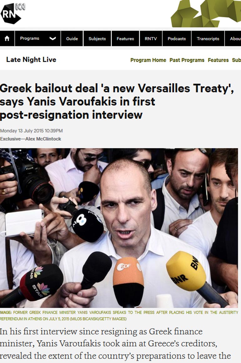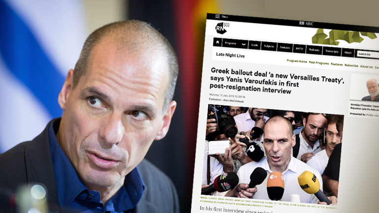 «Φωτιά» βάζει στο πολιτικό σκηνικό η συνέντευξη του πρώην υπουργού Οικονομικών στο αυστραλιανό ABC, μέσω της οποίας επιτίθεται στον πρωθυπουργό για τη σύναψη της επώδυνης συμφωνίας, κάνοντας λόγο για «πολιτική ταπείνωσης».