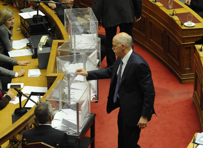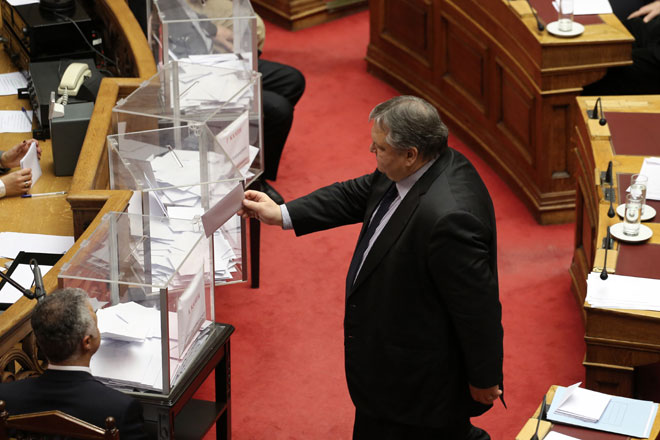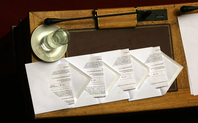 Κατά την ψηφοφορία από τους 163 βουλευτές του κυβερνητικού συνασπισμού μόνο οι 65 – 42 από τη Νέα Δημοκρατία και 23 από το ΠΑΣΟΚ- κατευθύνθηκαν αποκλειστικά στην πρώτη κάλπη του Γ. Παπακωνσταντίνου.