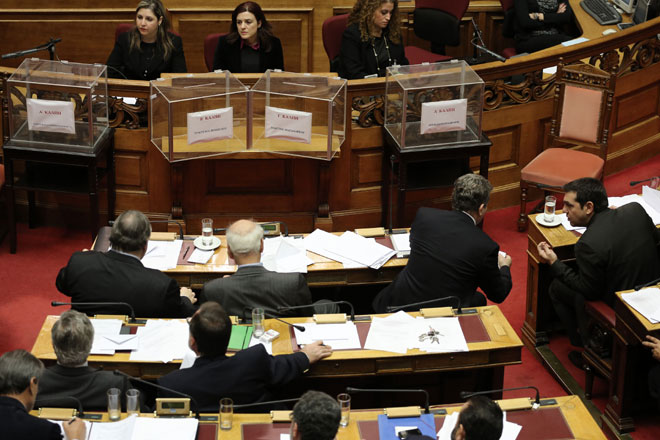 Αφού ενημέρωσε το Σώμα για τον τρόπο της μυστικής ψηφοφορίας ο Χρήστος Μαρκογιαννάκης, είπε στους βουλευτές ότι το ψηφοδέλτιο που είχε διανεμηθεί είναι το σωστό και ότι ήταν άδικος ο θόρυβος που δημιουργήθηκε. Ο κοινοβουλευτικός εκπρόσωπος του ΣΥΡΙΖΑ, Δ. Παπαδημούλης αν και επέμεινε ότι τα ψηφοδέλτια πρέπει να αναφέρουν το όνομα του εγκαλούμενου και από κάτω τα αδικήματα, είπε δεν χρειάζονται περιττές εντάσεις και μπορεί το Σώμα να τοποθετηθεί.
