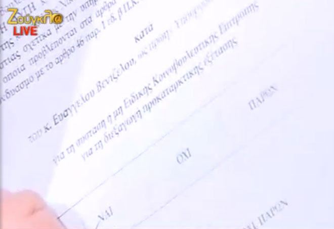 Τελικώς, δι εγέρσεως εγκρίθηκε ο τύπος του ψηφοδελτίου.