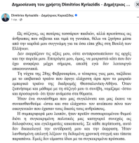 Αναλυτικά η ανάρτησή του στο Facebook: