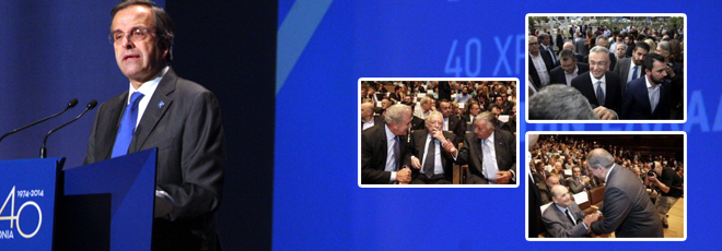 Ο κ. Σαμαράς επέλεξε την εκδήλωση για τα 40 χρόνια της ΝΔ και ενώπιον του κομματικού ακροατηρίου, έδωσε το στίγμα της επόμενης ημέρας, εξαπολύοντας επίθεση στην αντιπολίτευση και τον ΣΥΡΙΖΑ.
